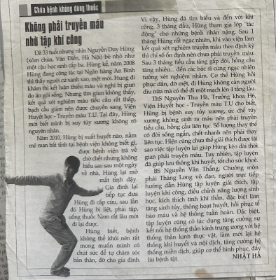 Bài viết ” Không phải truyền máu nhờ tập khí công ” được in trên báo giấy KH&ĐS từ nhiều năm trước