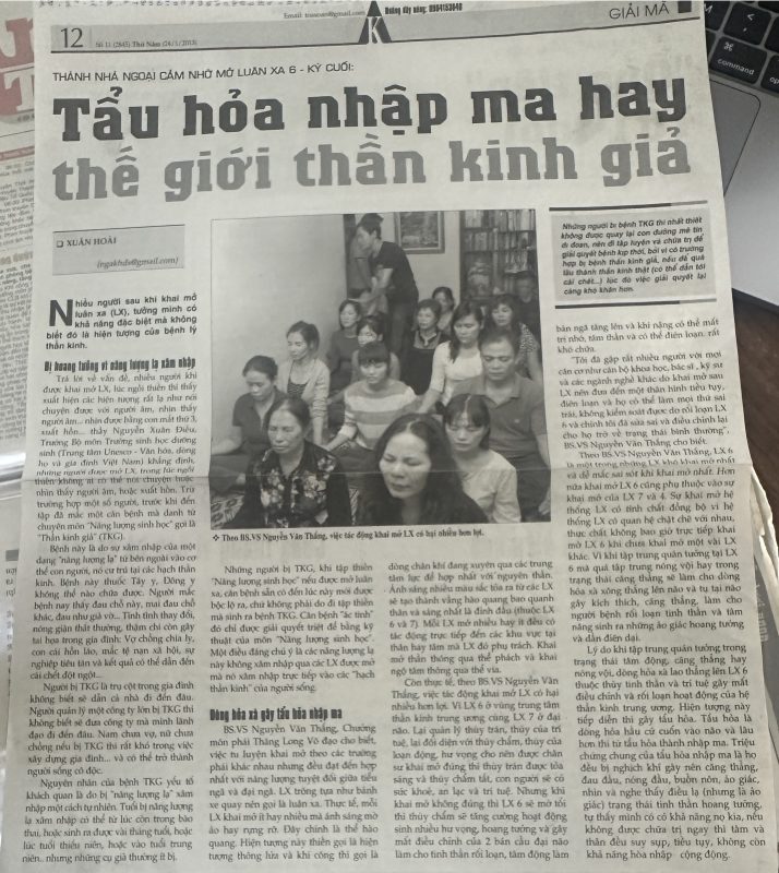 “Tôi đã gặp rất nhiều người với mọi căn cơ như cán bộ khoa học, bác sĩ, kỹ sư và các ngành nghề khác do khai mở sai LX nên đưa đến một thân hình tiều tụy, điên loạn và họ có thể làm mọi thứ sai trái, không kiểm soát được do rối loạn LX 6 và chính tôi đã sửa sai và điều chỉnh lại cho họ trở về trạng thái bình thường”, BS.VS Nguyễn Văn Thắng cho biết.