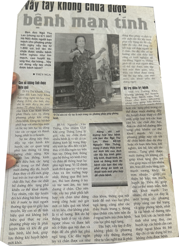 Bạn đọc Ngô Thu Lan (chung cư 671 HHT Hà Nội) được người bạn mách cho phương pháp mỗi ngày vẫy tay từ 1.800 cái trở lên thì chữa được nhiều bệnh hiểm nghèo như tim mạch, cao huyết áp, ung thư, đại tràng… Vậy có đúng vẫy tay chữa được bách bệnh?